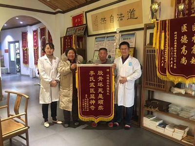 还有一位谈话幽默风趣的大哥,跟我们说他来的时候是因为在医院确诊了股骨头坏死。他当时都绝望了,觉得自己年纪轻轻的,怎么就“坏死”了。后来,他经朋友介绍来到了李志强院长这里。李志强院长对他针药齐施、内调外治,不仅控制住了他的病情发展,并且最近拍片的结果显示,他股骨头上之前塌陷的地方已经开始“鼓起来”。这位大哥的心情是一天比一天好,他相信自己只要配合李志强院长给他制定的治疗方案,自己就会康复的原来越好。