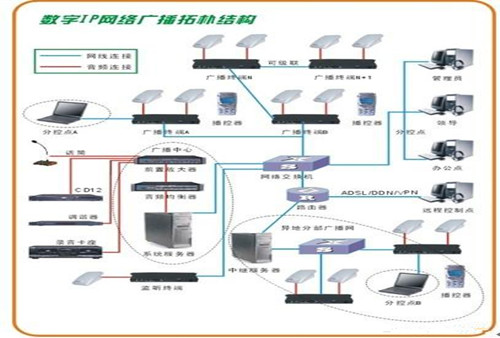 公共广播系统将广播的音频信号进行数字编码,并通过网络传输IP数据包,再由终端解码还原为音频信号的系统,称为数字IP网络广播系统。采用这种工作方式,可以实现多网合一,跨越局域网和广域网。借助强大的IP网络平台,广播系统迎来了新的飞跃!